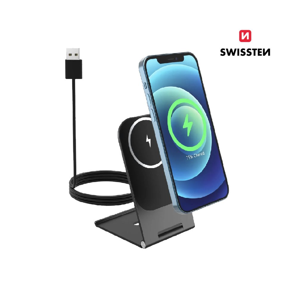 Carregador de 15W SWISSTEN Ultrafino com suporte MagSafe.