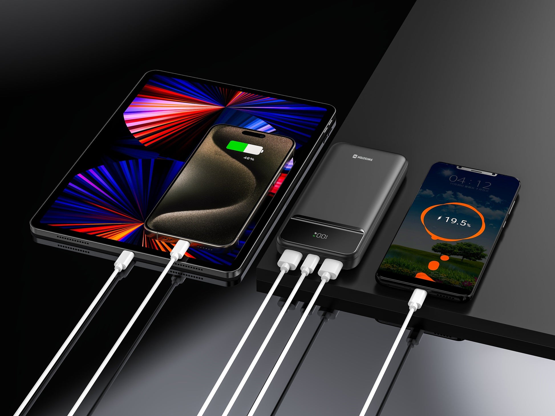 O Swissten Power Line II 10 000 mAh Power Bank (Black) combina elevada capacidade com múltiplas portas, oferecendo carregamento rápido até 22,5 W e capacidade para carregar três dispositivos em simultâneo.
